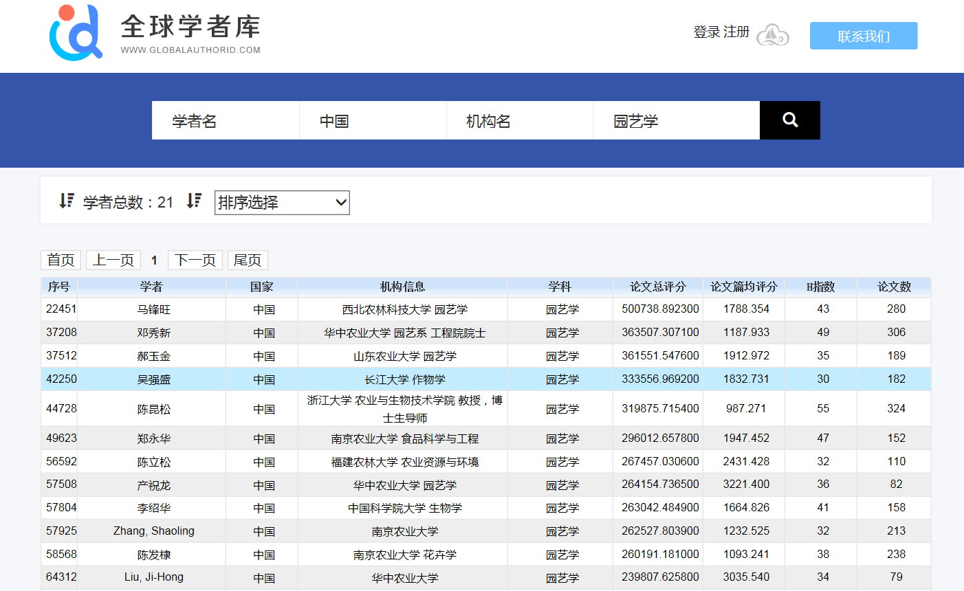 近日,国内全球学者库网站(http://www.globalauthorid.com/)公布了“全球顶尖前10万科学家排名”。公司2026世界杯官网吴强盛教授以论文总评分333556.9692、论文篇均评分1832.731、论文数182、H指数30,入选该项排名,位居全球42250名,在国际园艺学科排名第23位,国内园艺学科排名第4位。