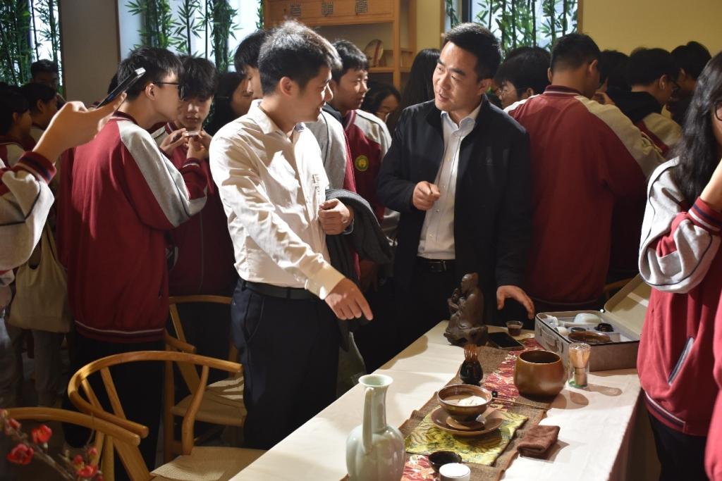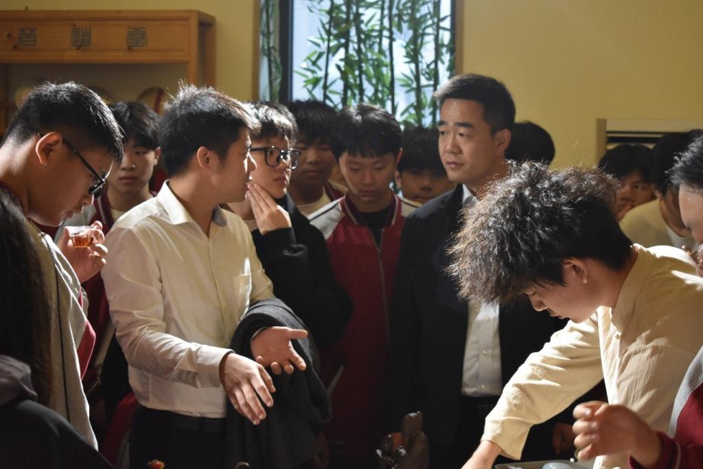 随后,众人随着吴山的脚步来到农科大楼,展开一场别开生面的教学活动。走进实验课堂,领略茶香文化,吴山亲自为大家介绍公司的实验项目,并邀请在校员工为研学同学们进行一场“茶”的艺术表演,现场气氛热烈。