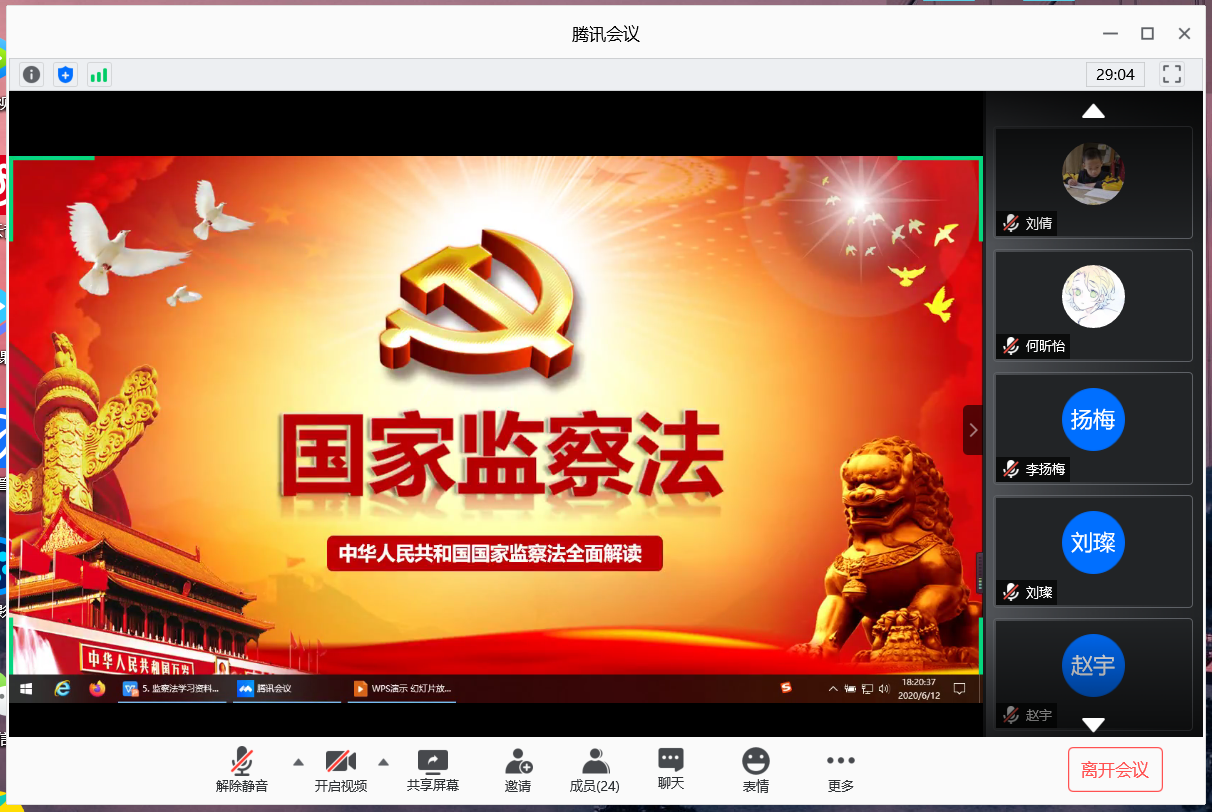 公司积极响应公司学习监察法,争做廉洁人通知精神,将“学习监察法,争做廉洁人”作为6月主题班团会主要内容之一,宣传组织,落到实处。各毕业班团支部结合自身实际情况精心策划并做好前期筹备,积极开展了此次活动。活动主要围绕三个方面展开:一是微团课、线上课堂环节,组织员工观看《学习监察法,争做廉洁人》专家视频讲座、监察法知识在线学习,对“学习监察法,争做廉洁人”主题进行了深入了解和自我学习;二是各支部开展主题班团会,讲解《2018版中华人民共和国监察法学习解读》,深入学习监察法的重要意义、起草过程、指导思想、基本思路、主要内容等;三是督促员工完成《中华人民共和国监察法》知识测试环节,对监察法知识进行回顾与巩固。全体毕业生参与度高,学有所获