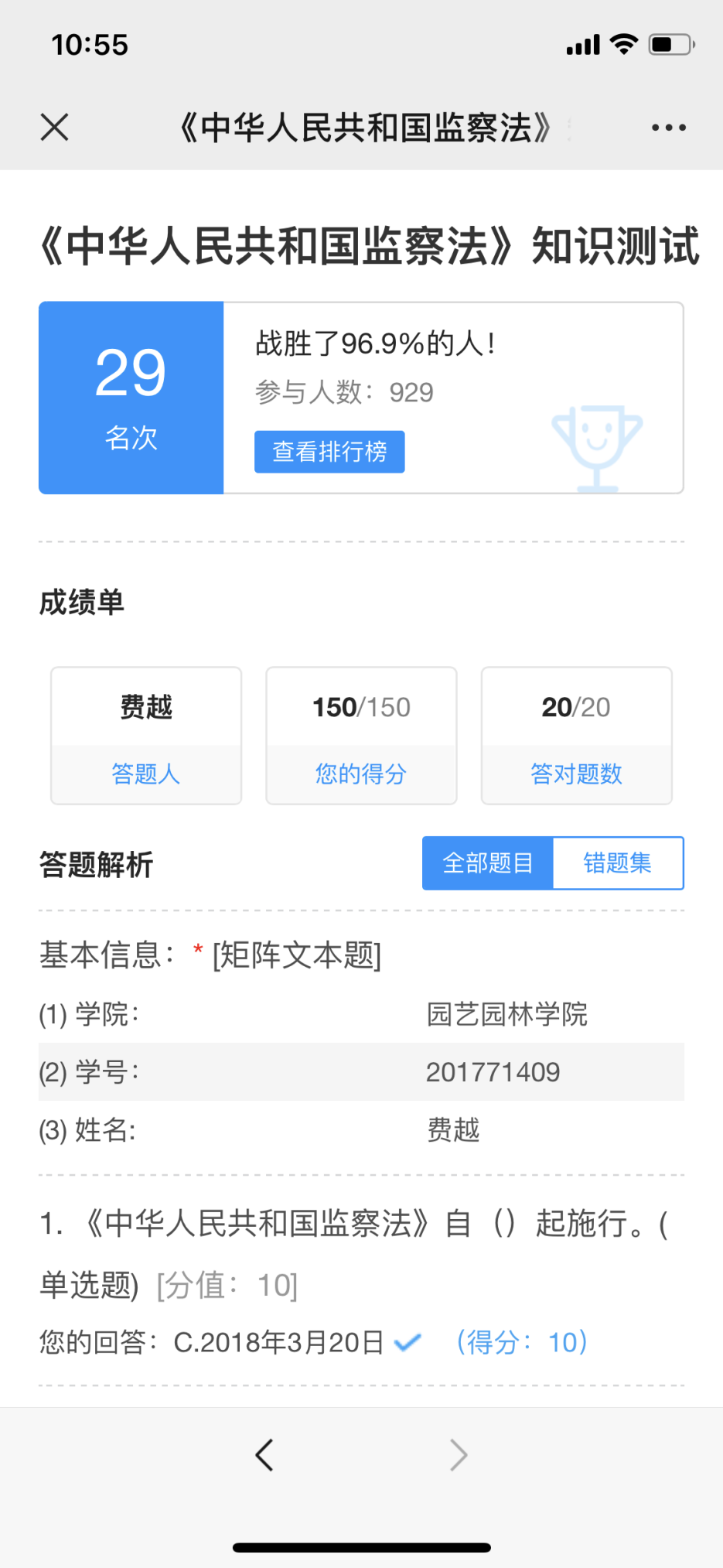“学习监察法,争做廉洁人”活动增强了同学们遵纪守法意识,激发了青年人的责任与担当,并提高了拒腐防变的能力,将“廉洁”带入每一位同学的日常生活、学习成才、发展就业的全过程,为2020届毕业生上好了一节廉洁教育课!