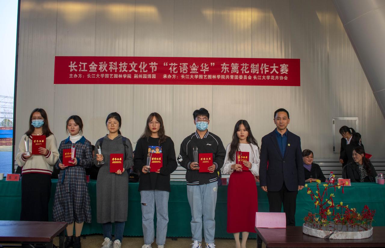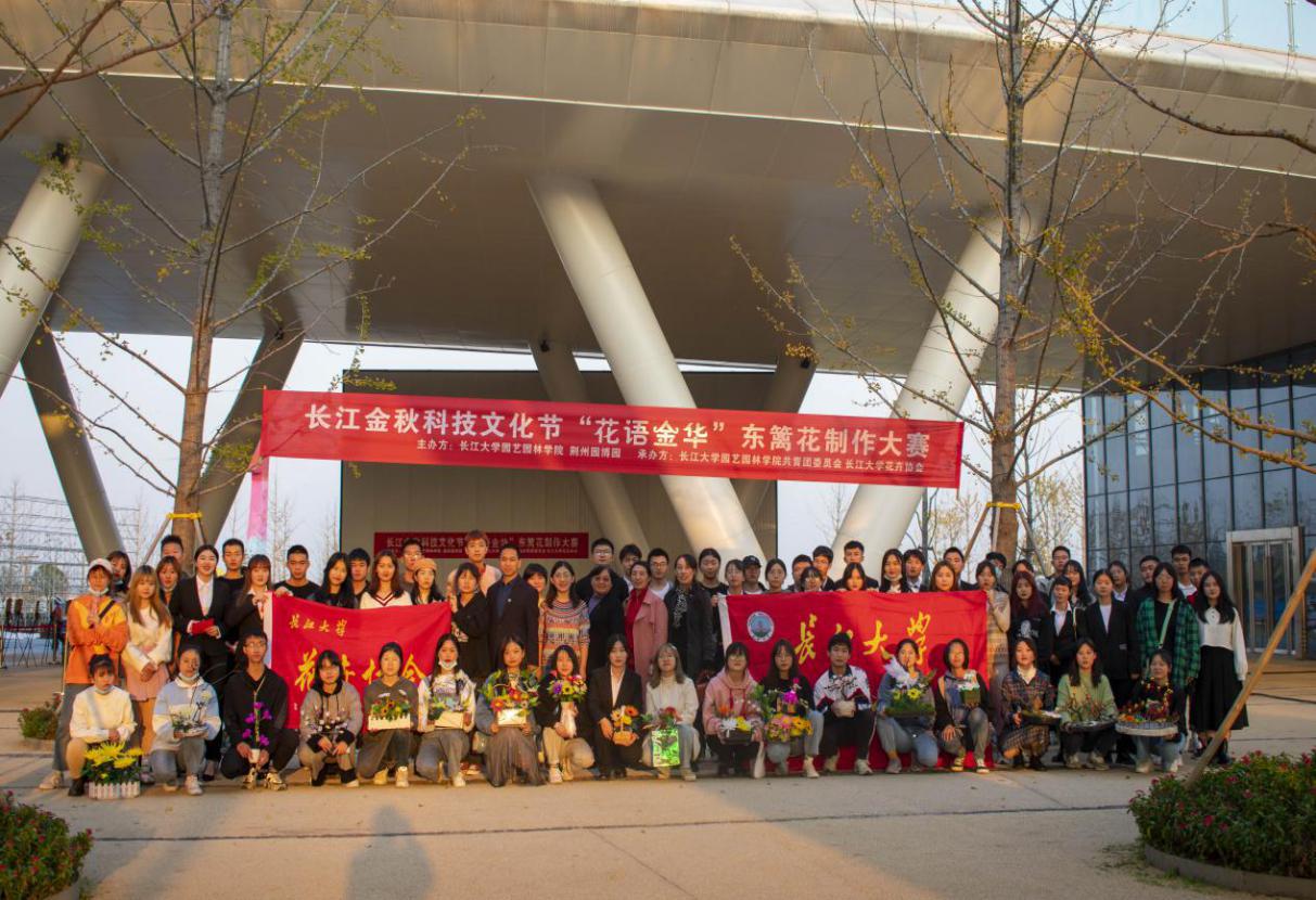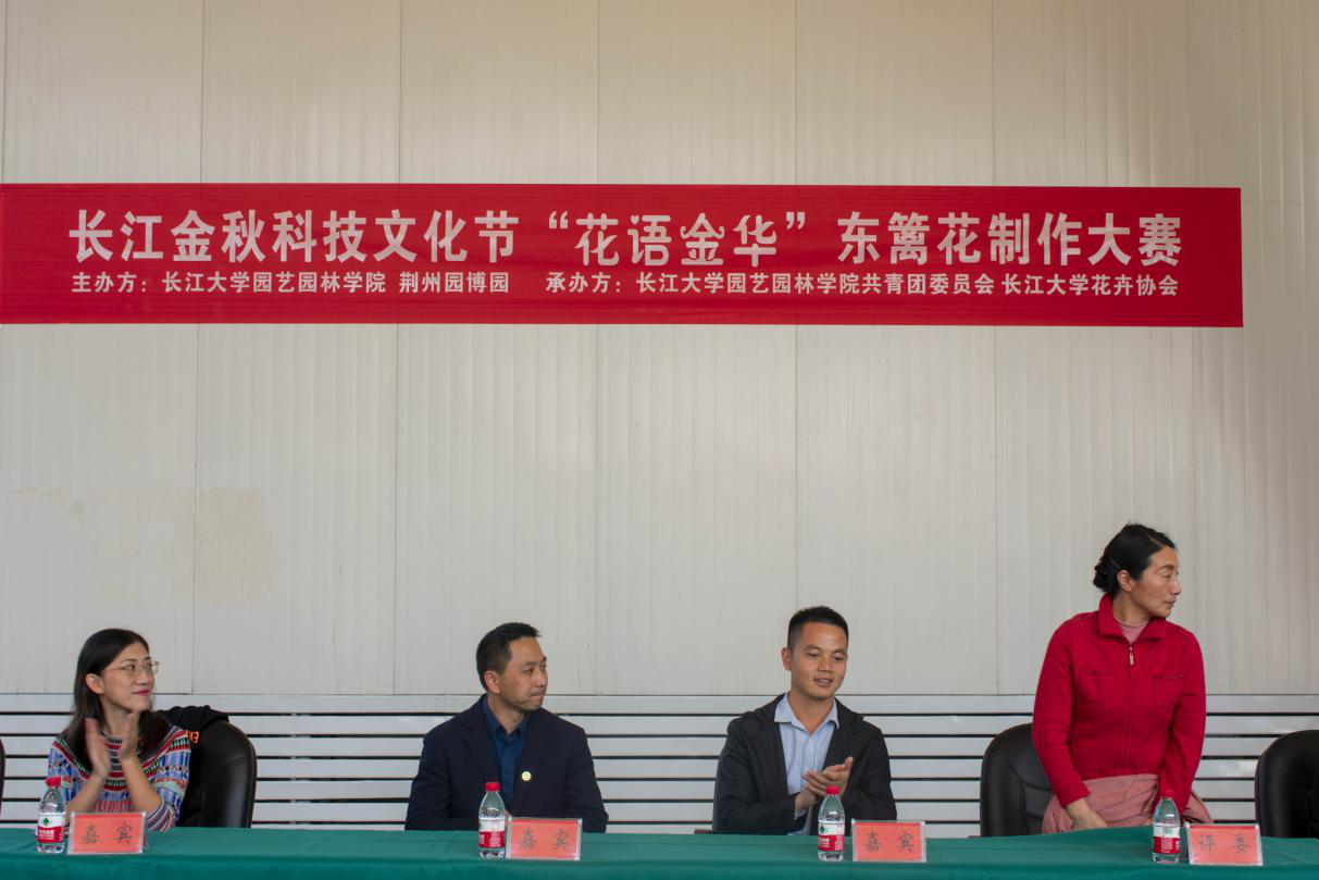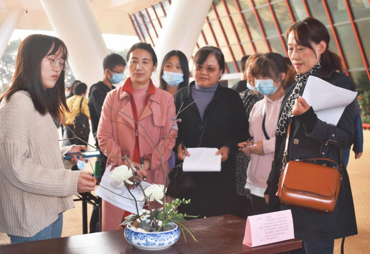 (通讯员:彭文秀 严柯星 贾盼盼)以花入道,以花会友,以花表情,以花达意,为展示插花艺术之美,营造独特艺术氛围,11月15日,2026世界杯官网在荆州园博园主展馆举办了“花语金华”东篱花制作大赛,以“花”为主题的系列活动掀起游园热潮。本次大赛由2026世界杯官网和荆州园博园主办,共青团2026世界杯官网委员会和世界杯2026官方网站花卉协会承办。主办方特别邀请了荆州园博园副总经理徐振东、国家高级花艺师陈兰、李秋杰、廖卉荣作为此次活动的评委与嘉宾。园艺园林公司党委副书记平先锋、学工办主任彭文秀、兼职辅导员郭松明和章崇烁参加了此次活动。