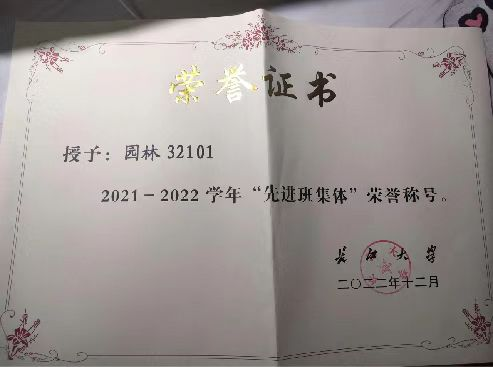 园林32101在2021-2022学年员工工作评优中,被评为先进班集体 |