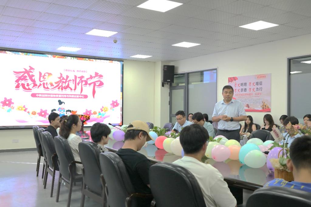 中韩加园林植物资源利用与种质创新中心全体师生于2024年9月9日在农科大楼3002A共庆教师佳节。全体员工为中心所有老师献上真挚的祝福,共度欢乐的时光。