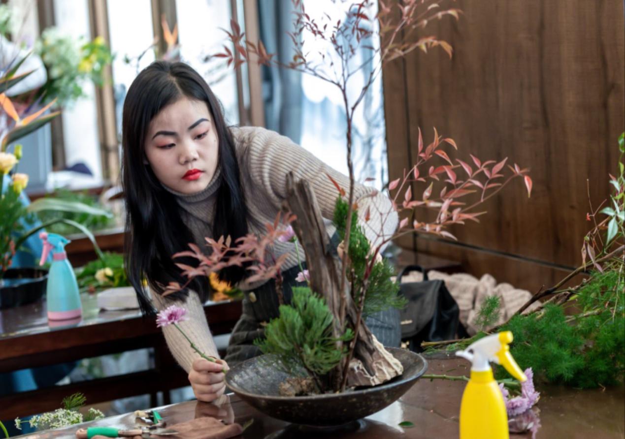 据悉,本次大赛主题为“传承中国花艺,培育大国工匠”,是省级一类竞赛,由湖北省人力资源和社会保障厅和湖北省花木盆景协会主办,湖北省生态工程职业技术公司、湖北省花木盆景协会插花分会、明德书院武汉国学馆联合承办。共有来自省属大专院校和企业共计50余位选手参加。