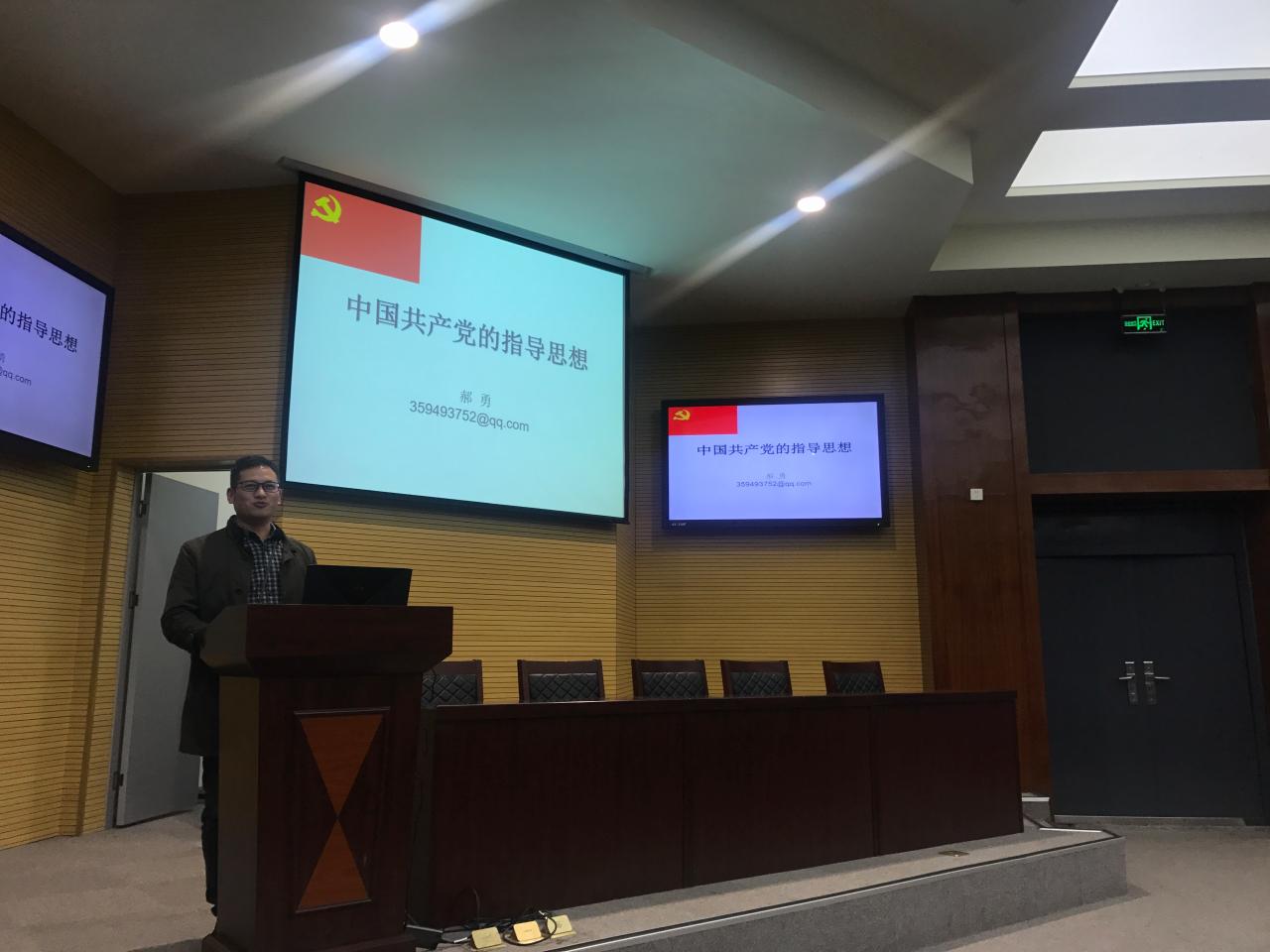 郝老师首先从入党动机出发,以提问的形式与同学们展开了交流,同学们积极发言。在对同学们的回答表示认可之后,郝老师分享了自己大学时期的亲身经历,进行了对入党动机的讲述,通过围绕本次党课主题——“中国共产党的指导思想”,分别论述了“新党章对党的指导思想的表述”,“党的指导思想的科学内涵及重要性”,“马克思列宁主义、毛泽东思想、邓小平理论、‘三个代表’重要思想、科学发展观、习近平新时代中国特色社会主义思想的基本内容”以及“一脉相承的科学体系”四个方面的具体内容。