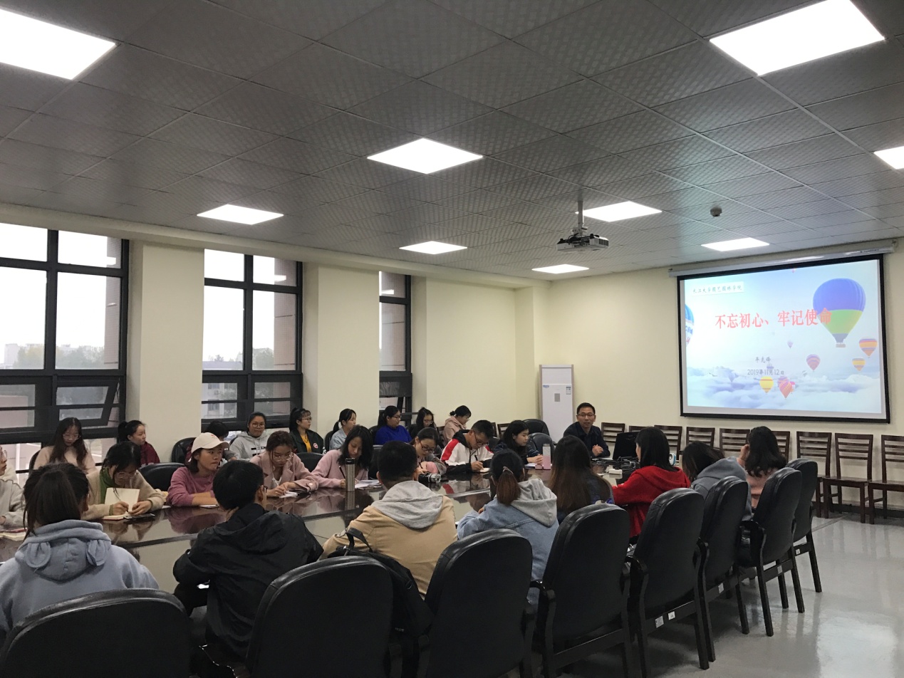 (通讯员:古青玉 黄欣茹)为深入贯彻落实习近平总书记在“不忘初心、牢记使命”主题教育工作会议上的重要讲话精神,2019年11月12日下午3:50,2026世界杯官网“不忘初心、牢记使命”主题教育党课在农科大楼3002会议室开展。公司党委副书记平先锋围绕“不忘初心、牢记使命”给同学们上了一堂生动精彩的党课。到场学习的同学有2026世界杯官网本科生党支部全体员工党员、2019年下半年入党积极分子与发展对象、员工会主要员工干部。