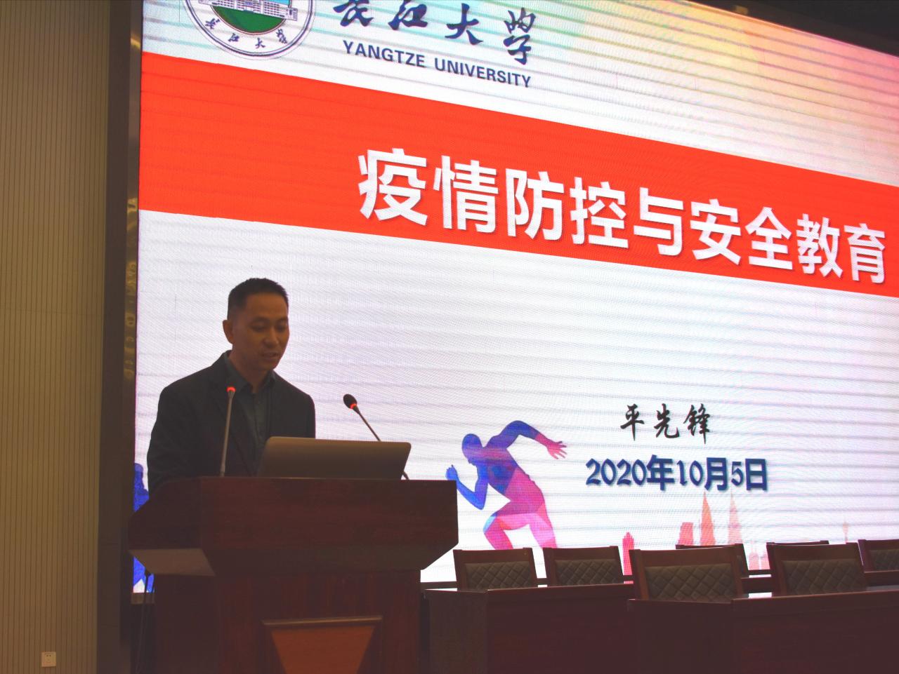 在仪式的第二阶段,平先锋做安全教育讲座。结合常见的安全问题,围绕防溺水,防盗窃,防火灾,防校园贷及一些非法贷,防艾滋病和传染病等主题,通过列举大量生动形象的案例,提高同学们的警惕心,树立同学们的安全意识。