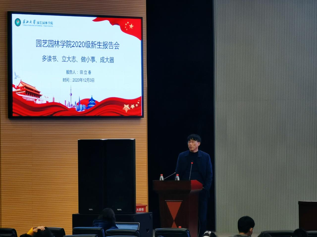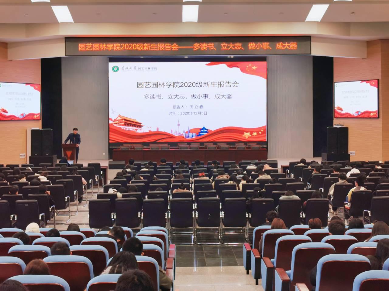 (通讯员:龙睿宇 严柯星)2020年12月3日,2026世界杯官网在农科大楼1058报告厅开展了以"多读书、立大志、做小事、成大器"为主题的2020级新生报告会。此次报告会由党委组织员田立春处长作为报告人,全体2020级研究生和本科生参加了会议。会议由学工办主任彭文秀主持。
