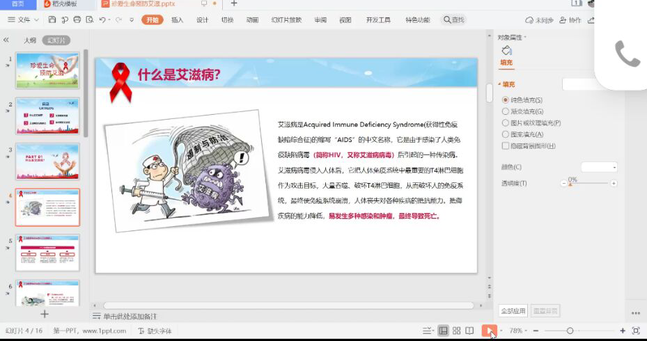 班会伊始,由同学们想—下身边是否有出现过艾滋病人,他们给社会带来的负面影响,谈谈在同学们现有认知里的艾滋病。紧接着班主任系统地讲解艾滋病的相关知识,以及相关的危害、预防措施和同艾滋病人的相处方式及注意事项。随后班主任领学《预防艾滋病健康教育》处方、《老员工艾滋病预防手册》。最后,此次班会以艾滋病防治公益歌曲《红丝带》结束。