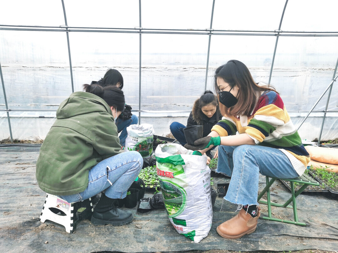 在观赏园艺实习的同时,同学们也不落下蔬菜的播种、移栽。看到毫无下地干活经验的同学们在蔬菜地里挥着锄头、铲子,蔬菜实习指导老师饶贵珍教授笑着说:“员工们的热情都很高,但是由于缺乏经验,大部分同学对于栽培管理以及种植手段,理解还停留在书本知识上。”为了让同学们真正学会种地,真正将书本知识运用于实践,真正掌握园艺植物栽培种植技巧,饶贵珍教授根据自己几十年的实践教学经验,手把手教同学们挖地、移栽、浇水、施肥以及中耕松土。进行生产实习是辛苦的,在劳累了一整天之后,18级园艺专业的昝天祥发出感叹:“‘种豆南山下,草盛豆苗稀,晨兴理荒秽,带月荷锄归。’我现在深刻理解了这两句诗的内涵。”