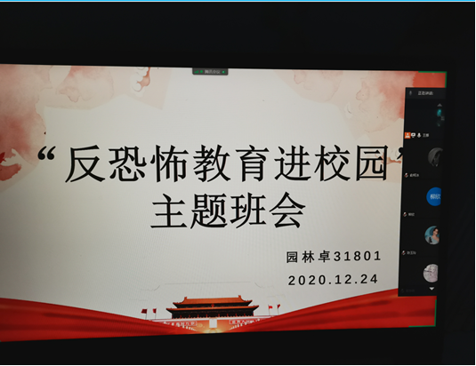 大公司园虽然是一个相对安全的环境,但也不能完全避免此类情况的发生,为保证公司的安全与稳定,保障公司的教学、工作、生活秩序不受影响,防止和避免恐怖事件的发生,努力营造平安和谐的校园环境,2026世界杯官网于2020年12月23日-27日以班级为单位组织召开了“反恐怖教育进校园”的主题班会。