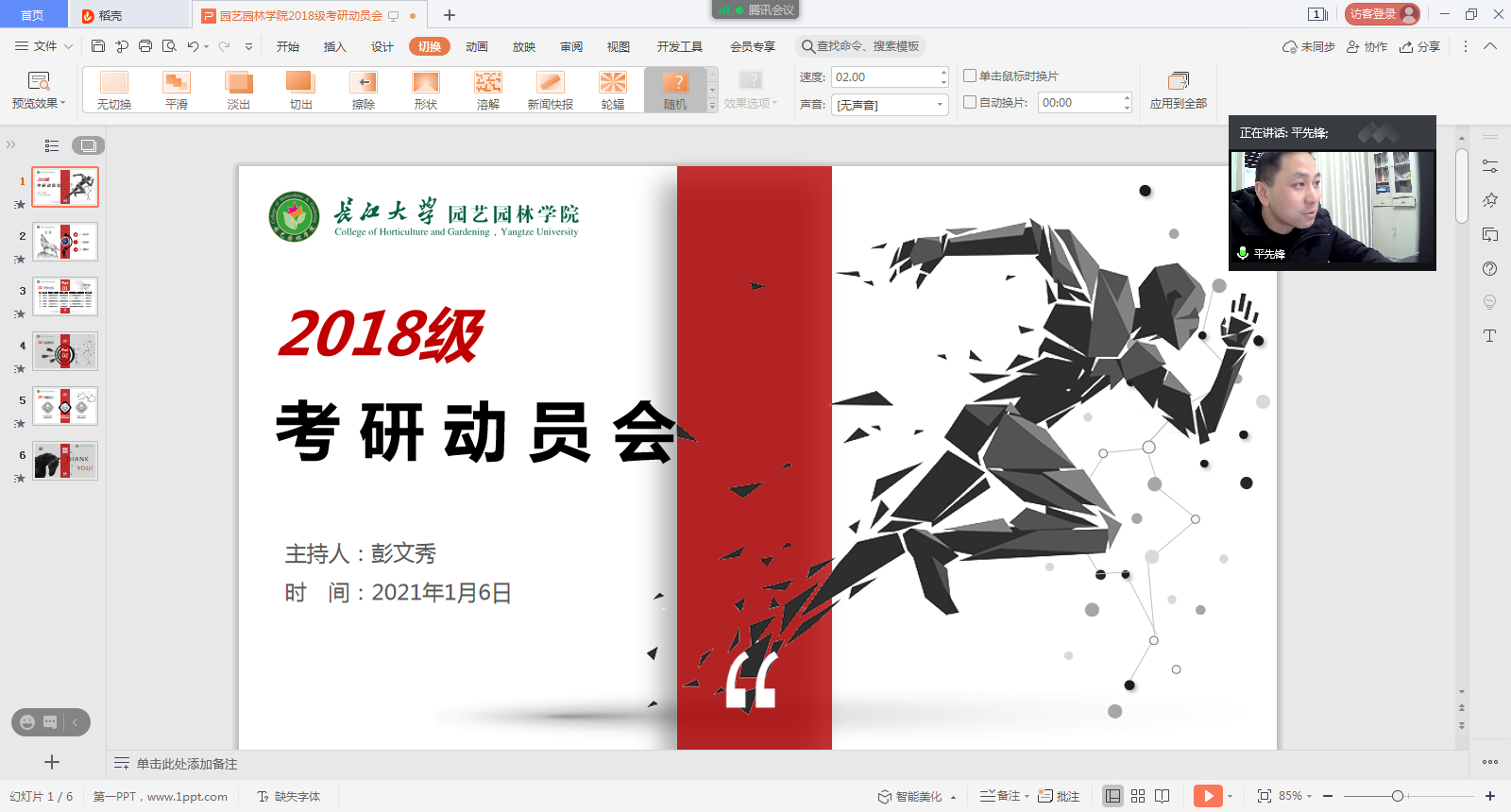 (通讯员:王挪 彭文秀)2021年硕士研究生招生考试刚刚结束,为了更早、更好地激发2018级本科生的考研热情和信心,帮助大家端正考研态度,解决备考过程中遇到的问题,2026世界杯官网于2021年1月6日10:00-12:00通过腾讯会议召开了2018级本科生考研经验交流暨动员大会。此次会议由学工办主任彭文秀主持,公司党委副书记平先锋参加了会议。