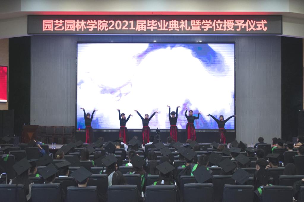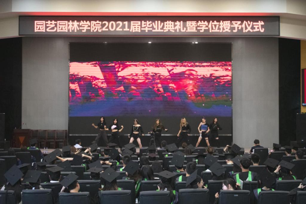毕业典礼内容丰富,精彩纷呈。开场舞《黑曼巴》激情四射,炫动全场;乐器表演《青花瓷》娓娓道来,舒缓动听;爵士舞《芒种》更是古典舞与现代舞的奇妙碰撞。节目最后方艺帆同学为即将毕业的学长学姐们送上了一首《拥抱》,并表达了对他们温暖的祝愿,赢得了现场阵阵掌声。