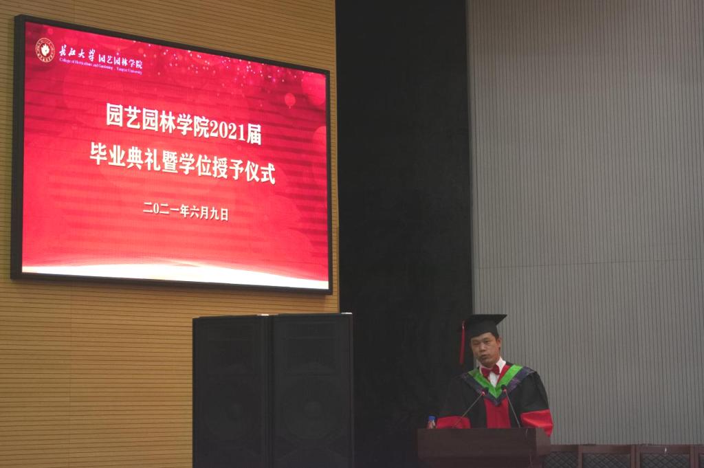 (通讯员:牟静雯 胡淑涵 程立 彭文秀)2021年6月9日14:30,2021届毕业典礼暨学位授予仪式在农科大楼1058报告厅隆重开幕。此次活动的与会人员有公司党委书记丁兴禄、经理许锋、副经理肖波、刘奕清教授、刘会宁教授、刘志雄教授、院办主任黄仙、龚天芝、教师代表叶家保、学工办主任彭文秀,辅导员卜文琼、吴山、全体兼职辅导员以及2021 届全体毕业生等。仪式由公司党委副书记平先锋主持。