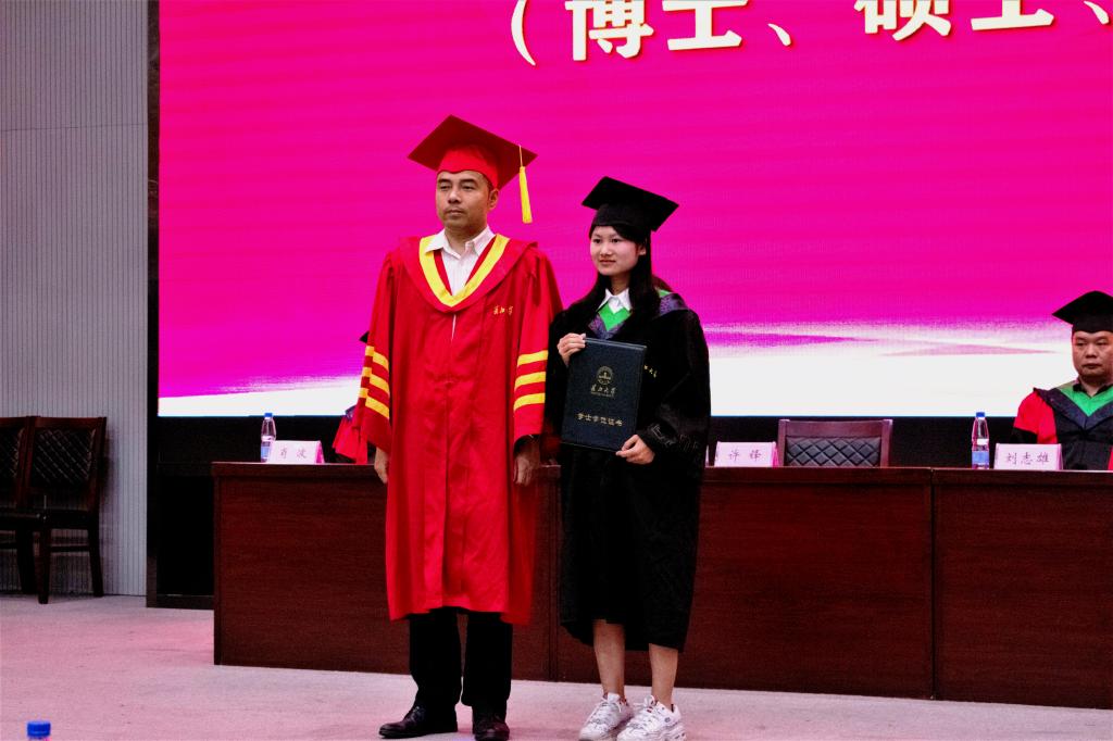 仪式第六项,许锋经理为毕业生授予学位证书并合影留念。接下来,许经理发表讲话,他表示:“天下没有不散的宴席,希望同学们不惧风雨,未来永远激情满怀,用赤子之情担使命,和祖国站在一起。走的再远都不能忘了来时的路。要胸怀两个大局,在党的领导下有忧国忧民知心,爱国爱民之情,始终奋斗,母校永远是你们的坚实的后盾!”