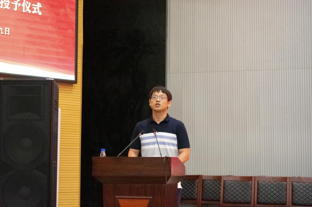 仪式第二项,教师代表叶家保发言。叶老师表示:“时光荏苒,这四年所有的相遇都是美好,所有的相遇都是宝藏,愿同学们历尽千帆,归来仍是少年!”