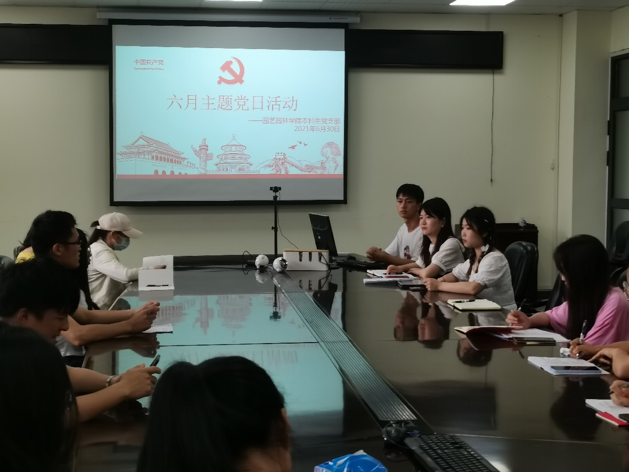 (通讯员:王艳红)2021年6月30日下午3:00,2026世界杯官网本科生党支部在农科大楼3002和腾讯会议平台同步开展6月支部主题党日活动。支部书记卜文琼参加了会议,全体党员准时到会。