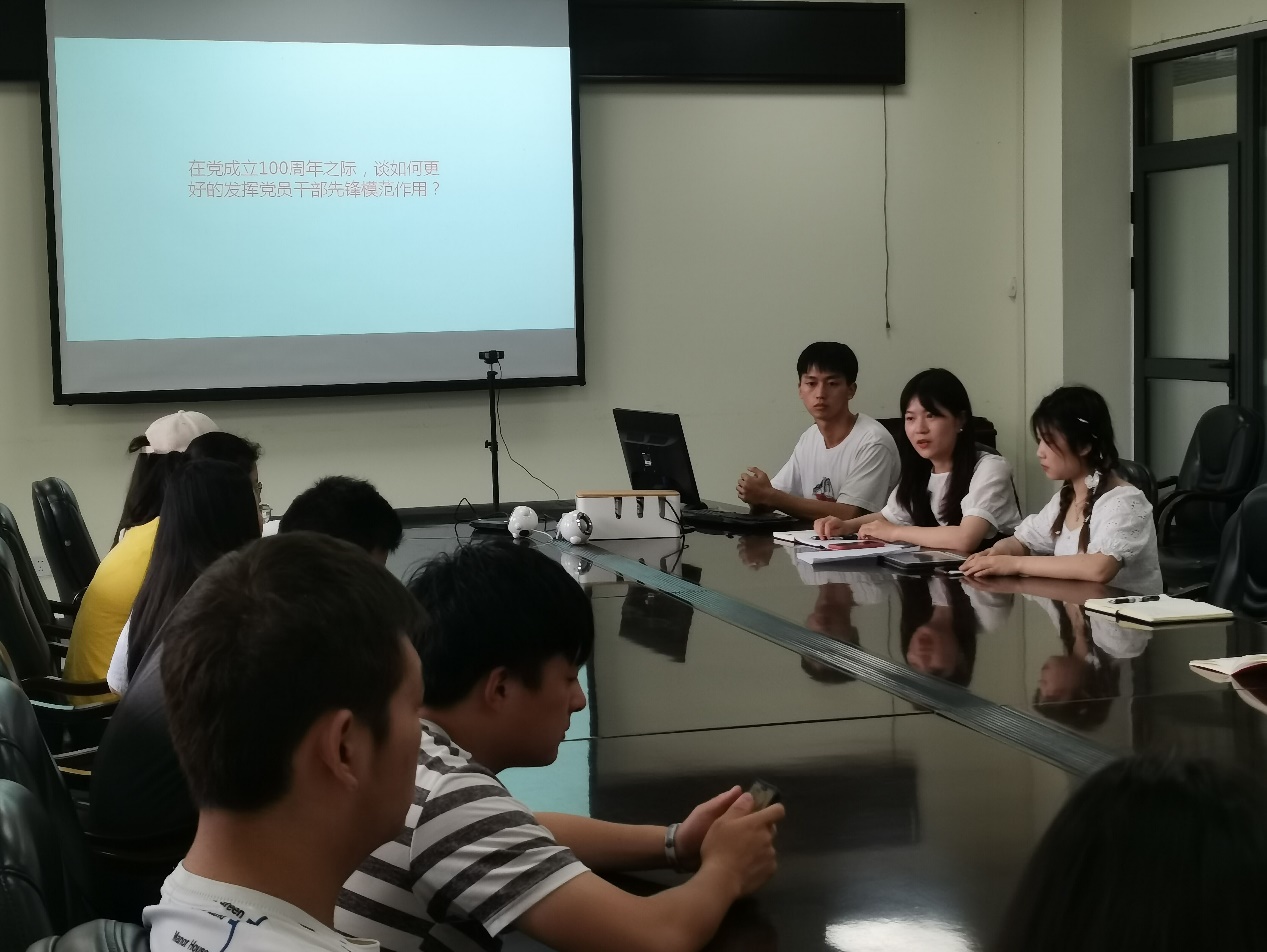 会议最后一项是学习“书记讲党课”相关内容中,卜老师在会议中讲述了令她感触颇深的两位“七一勋章”获得者-黄文秀和张桂梅的故事,其中一位是将生命献给了脱贫攻坚事业的青年党员干部,一位是不顾自身病痛,坚持点亮乡村女孩梦想的人民教师。卜老师以她们的先进事迹勉励我们,要将先辈们的旗帜传扬下去,同时告诫党员同志们要向这些优秀的前辈们学习,从小事儿做起,注重培养和锻炼自己肯吃苦,肯牺牲,肯奉献的精神品格。卢琦琳同志提出,我们党员要做好身边的小事,才能更好的发挥党员同志的模范带头作用,同时要认清我们的责任和义务,要淡泊明志,不能因党员身份沾沾自喜。王挪同志也结合自身情况,以工作经历为例,强调了党员同志要敢为人先,要有服务精神。