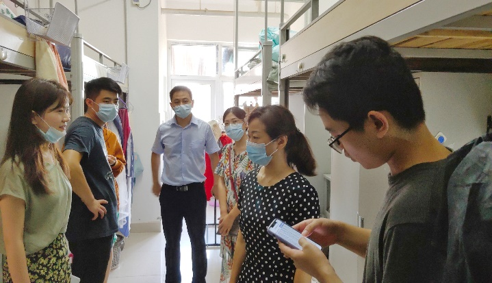 周经理一行首先前往本科生河滨公寓,确认各年级员工到校情况,关心同学们开学第一周在宿舍的学习生活状况,鼓励员工投入时间和精力在学习上,同时叮嘱大家遵守疫情管控要求,注意宿舍安全和卫生。