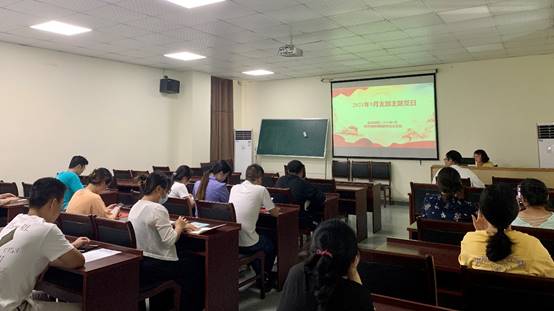 本月支部主题党日活动依据习近平总书记重要讲话及有关会议文件精神开展主题学习与探讨活动。本次主题党日活动以重温入党誓词开始,全体党员依次诵读了党章,学习了党章第十章、十一章内容,增强了党员纪律观念和责任意识。然后支部成员集体学习习近平总书记在庆祝中国共产党成立100周年大会上的讲话以及党史教育指定内容——《中国共产党简史》的第四章,重温了党的光辉历程和党员的初心使命,传承和发扬了红色精神,加强了爱国爱党情怀。