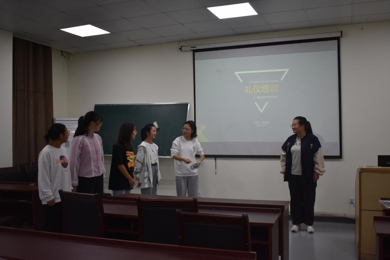 为了达到更好的培训效果,李念蔚学姐通过现场互动及现场示范的形式调动气氛,参训人员积极配合,寓教于乐不仅增强了参训人员的参与性与积极性,而且使现场人员加深了对礼仪知识的理解。整个培训现场反映良好,大家在高涨的学习氛围中掌握了许多实用性极强的社交礼仪知识,加强了部员相互间的了解与沟通。