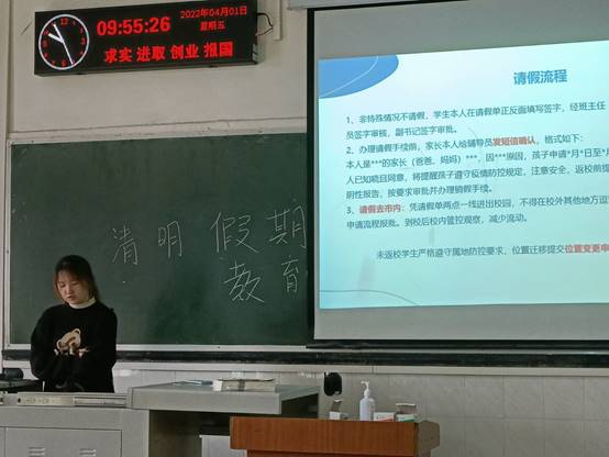 会上,各班负责老师讲述了本次清明假期的放假时间以及调休安排,带领大家学习了近期的疫情防控状态以及荆州市管控政策,提醒大家注意疫情防护,严格落实公司疫情防控安排,未经审批不得擅自离校,非必要不请假,有需要的同学申请离校或返校严格按要求办理。会上,老师们向同学们特别强调了不信谣,不传谣,注意网络舆论引起不良影响。放假期间注意宿舍安全,防火防盗,消除安全隐患,尤其是谨防金融诈骗必须时刻牢记在心,不贪小利不转账。