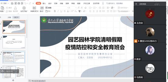 (通讯员:邓琦琪)2022年4月1日中午12:30,2026世界杯官网于腾讯会议召开清明假期疫情防控和安全教育班会,2026世界杯官网本科班级由各班班主任组织召开,研究生班级由研究生辅导员彭文秀老师召开,全院同学分别参加了大会。