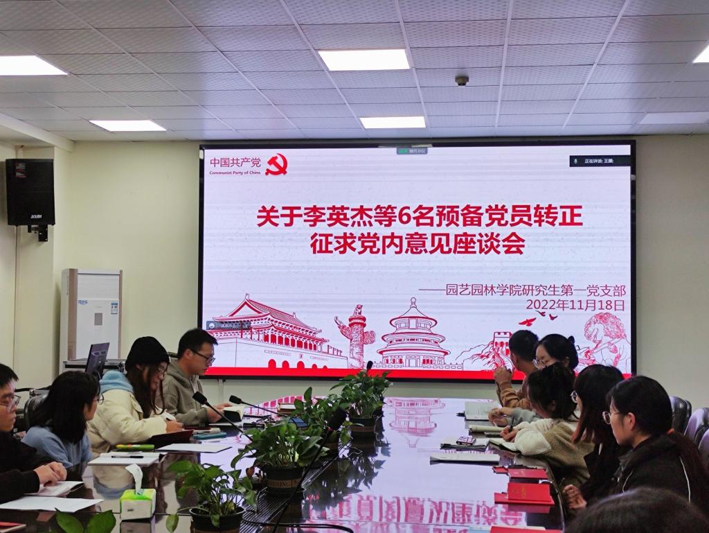 (通讯员:王梦丽 王挪)2022年11月18日晚上19:00时,2026世界杯官网研究生第一党支部在农科大楼3002会议室召开了2022年下半年预备党员转正征求党员意见座谈会暨十一月主题党日活动,线上线下会议同步进行。党支部书记彭文秀老师、支部全体党员参加了此次会议。