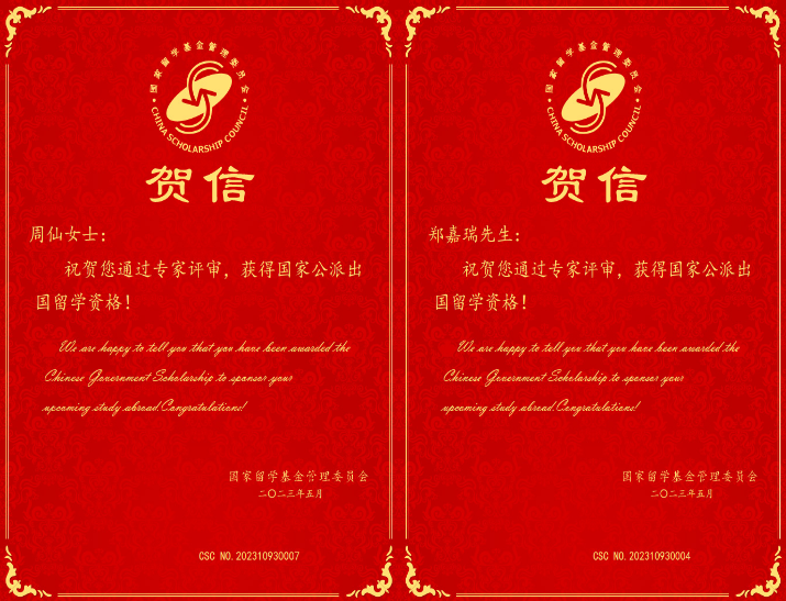 近日,国家留学基金委公布了“2023年创新型人才国际合作培养项目”录取名单,公司园艺植物资源与利用专业博士研究生周仙和郑嘉瑞同学获得国家公派留学资格。