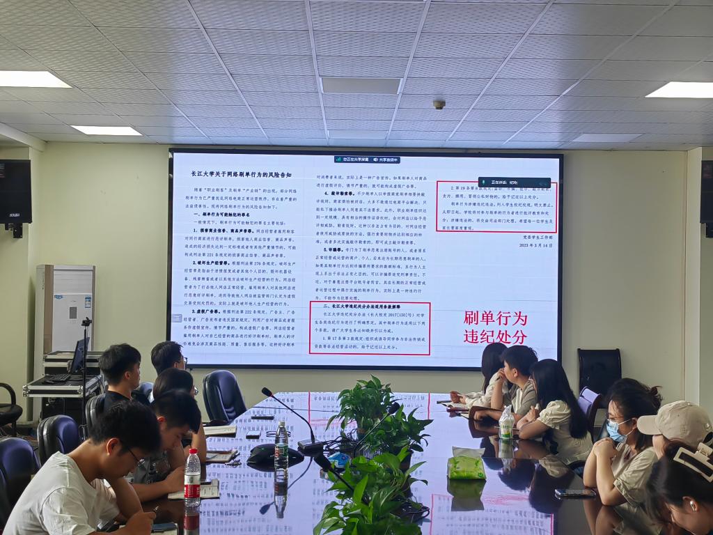 会议分为两部分展开,第一部分围绕各年级研究生诚信考试、安全教育、纪律通报三方面进行详细说明。首先,彭老师带领大家学习世界杯2026官方网站考风考纪相关文件,传达考试纪律和考试作弊案例;随后向同学们展示最新诈骗手段以提醒同学们严禁出现非法集资、网络刷单等违法违纪行为;会中还强调注意夏季溺水、食品及交通安全等,此外对青年大学习与健康打卡情况进行通报。