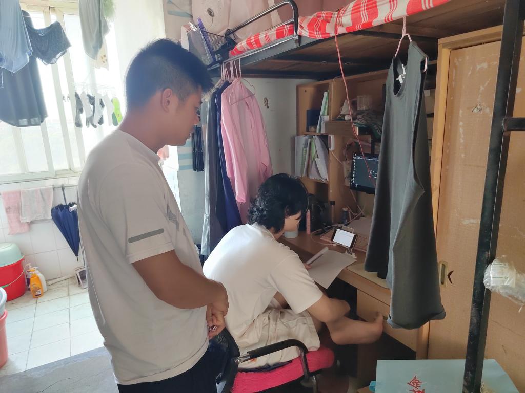 在对毕业生宿舍的走访中,辅导员吴山老师,询问同学们的毕业感受以及离校准备情况,关注毕业生在学习、生活及工作中存在的困难,鼓励同学们以积极主动的心态面对挑战,并表示,如果以后遇到困难了,要积极和公司老师联系,长大是学子们坚强的后盾。