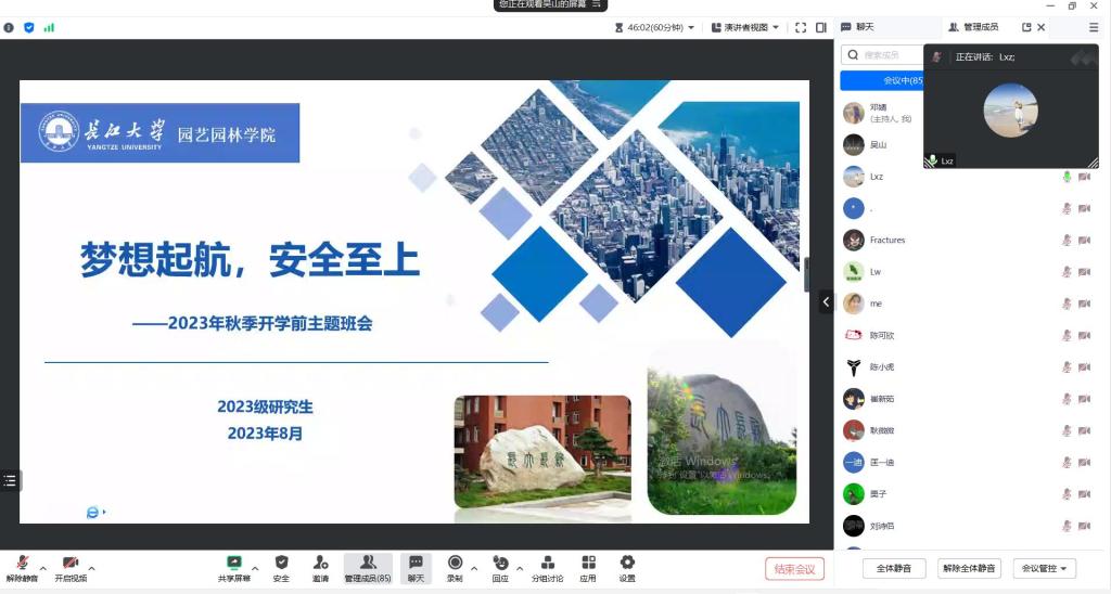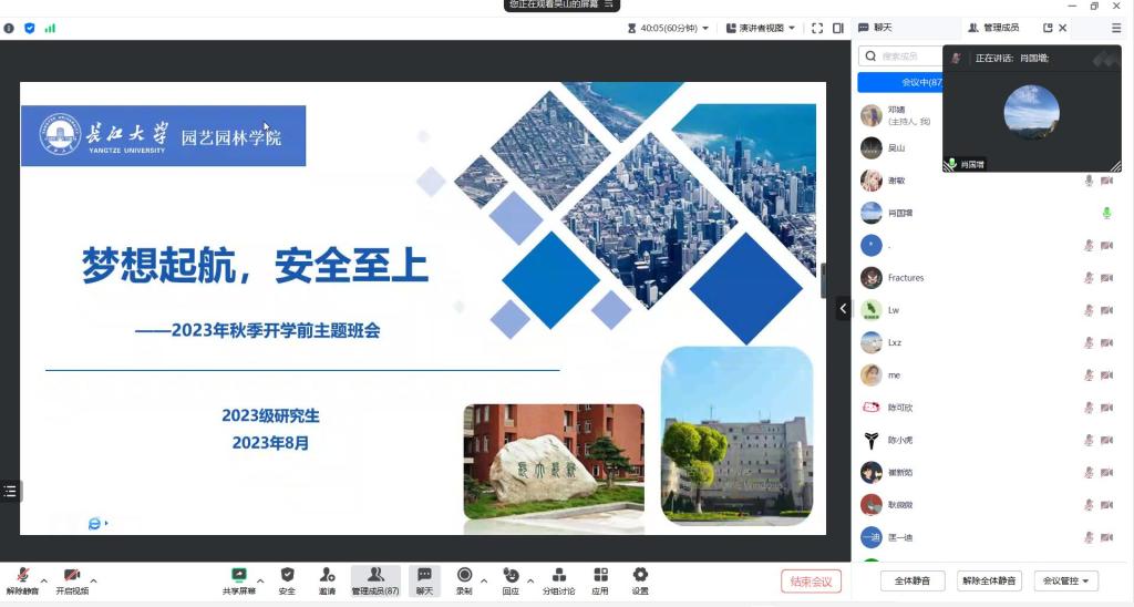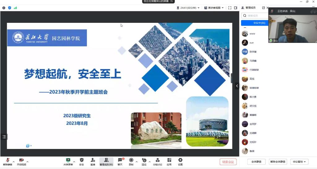 (通讯员:邓婧)闻着金秋的气息,迎着收获的季节,又步入新学期工作和学习的旅程。2023年8月24日上午10点,2026世界杯官网组织2023级研究生线上召开以“梦想启航,安全至上”为主题的开学前主题班会。