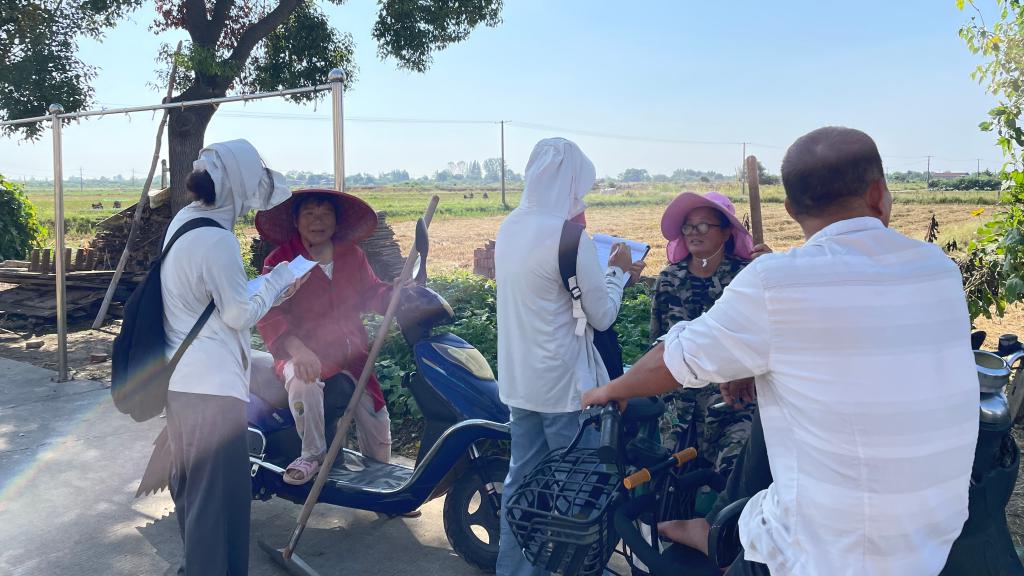 活动共分为两个阶段,首先是师生小组赴岳场村金岳小区开展调研。调研小组通过访谈各层级工作人员和志愿者,走访社区民众、发放调查问卷,摸清每户的人员结构、职业、困难需求等情况,为后续共建工作的开展打造坚实的基础。村民们就算是忙于收谷晒谷,也会放下手头的活,积极配合员工们的调研工作,大家围绕着村庄发展、环境改善交流讨论,调研工作在闲话家常的轻松氛围中开展得十分顺利。