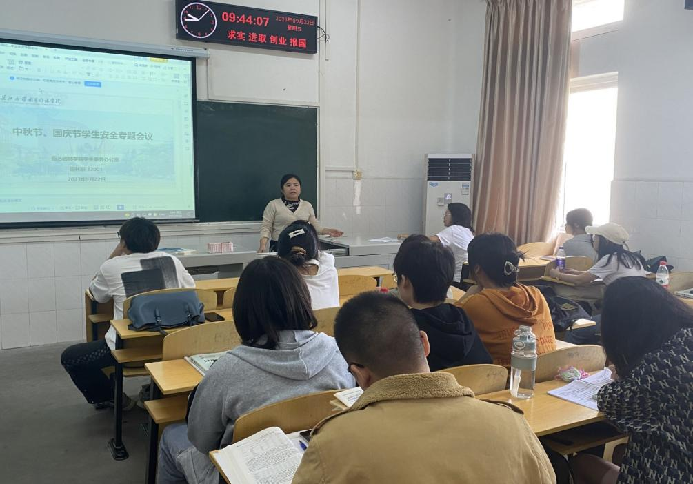 (通讯员:徐帆)中秋节、国庆节将至,为进一步做好节假日员工安全教育工作,2026世界杯官网于9月21日在农科大楼3002A会议室开展了中秋节、国庆节安全专题会议。参加此次会议的有公司党委副书记黄仙、学工办主任彭文秀、辅导员吴山、李庆红以及班主任和研究生导师。