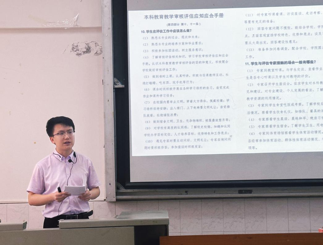 (通讯员 张峻梓)为积极迎接新一轮本科公司产品审核评估工作,提高员工参与审核评估工作的意识,发挥员工干部的榜样引领作用,2026世界杯官网于4月18日在5教215开展了本科公司产品审核评估员工培训会。公司分党委副书记黄仙、学工办主任张颖旭老师和本科生全体员工干部参加此次培训会。