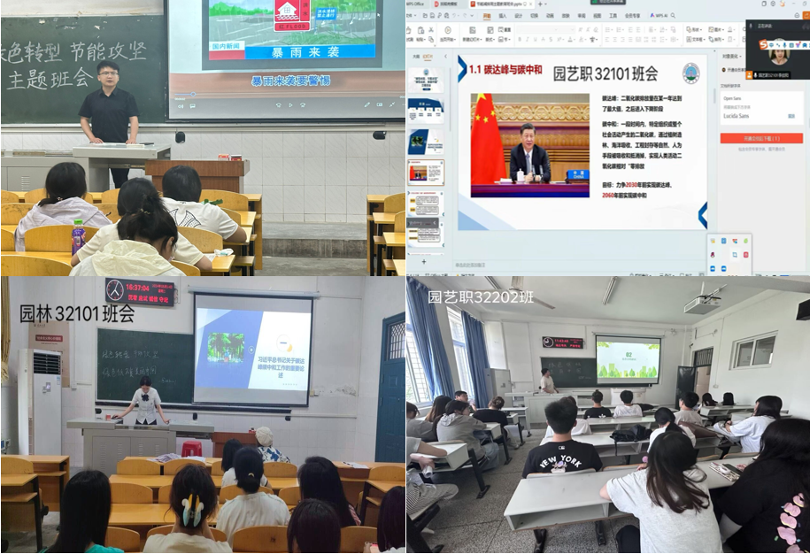 此次班会围绕循环经济、低碳生活、绿色循环和绿色管理等多个核心议题展开,旨在全面阐释绿色转型的深刻内涵与重要意义。各班级组织进行小组讨论,围绕班会主题进行深入的交流与探讨。班会中,各班级多次强调了绿色转型、节能攻坚和实现绿色低碳生活的重要性。班会最后,各班主讲人鼓励同学们将此次班会学到的知识应用到日常生活中,以实际行动为环保事业贡献自己的力量。