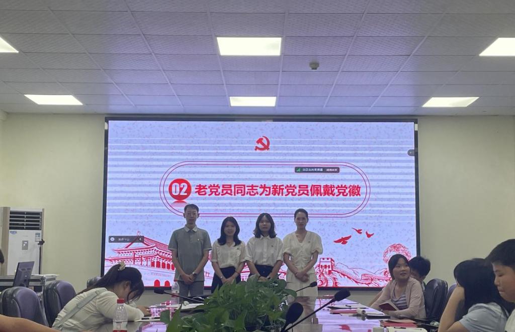 最后,老党员为新党员佩戴党员徽章,党支部书记吴山老师总结了此次大会,并对党支部成员提出了“传承”,“团结”,“和谐”六字共勉经验,加强支部凝聚力,同时,提醒支部成员做好学习强国的学习以及要积极参加支部组织生活会。
