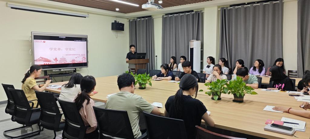 本次活动分为四项议程。第一项重温入党誓词;第二项支部书记张颖旭讲授微党课,此次微党课学习内容是《中国共产党纪律处分条例》。他强调,支部全体党员要以新修订的《中国共产党纪律处分条例》为准绳,以反面典型案例为镜鉴,切实强化纪律意识、加强自我约束、提高免疫能力;第三项开展理论学习,由支部委员郑凤玲、胡柳等同志进行领学。学习内容包含习近平总书记关于党的纪律建设的重要论述和省、市委及公司重要会议精神等;第四项开展主题研讨。支部全体党员结合学习工作实际,交流研讨《中国共产党纪律处分条例》学习心得。陈聪、邓琦琪等同志踊跃发言,他们认为在学习和生活中,党员同志应严格遵守严守政治纪律,组织纪律和廉洁纪律,主动承担责任,为班级和公司做好服务,发挥好先锋模范作用。