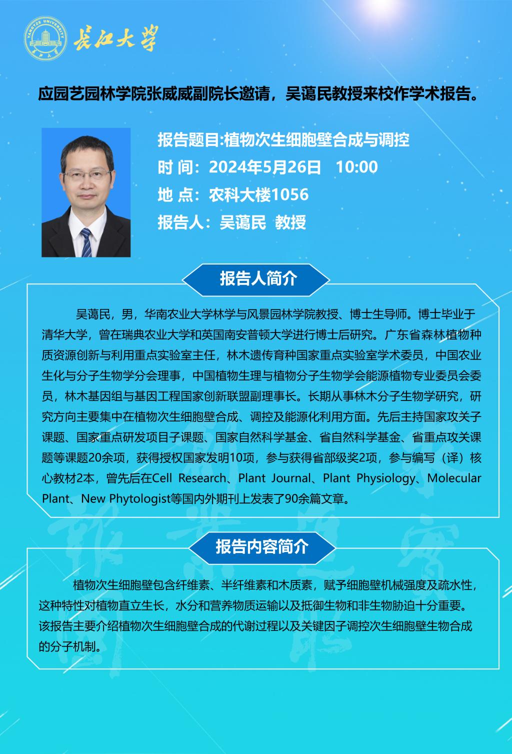 园林讲坛(2024年第十三讲):植物次生细胞壁合成与调控