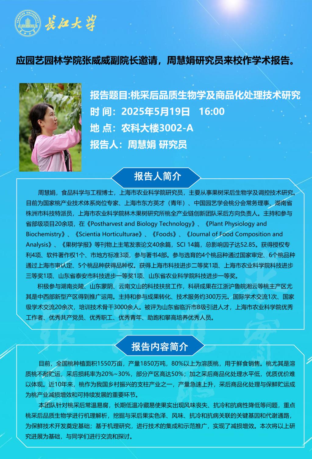 园林讲坛(2025年第八讲):桃采后品质生物学及商品化处理技术研究