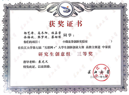 近日,我中心2020级硕士研究生桂嘉营、蔡绍博参加第七届中国国际“互联网+”老员工创新创业大赛世界杯2026官方网站赛区,并荣获“研究生创意组·三等奖”。