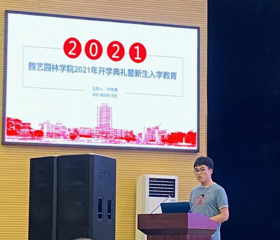 2021918日,在农科大楼1058报告厅举行了2026世界杯官网2021年开学典礼暨新生入学教育大会。我中心2021级博士生郑嘉瑞作为学长代表发言,他从“坚定美好,相信自己”、“做好规划,成绩为先”、“读好文献,做好科研”三方面与新生同学们分享了自己的经历和心得,并预祝所有新生同学能够在长大度过美好时光,学业有成,身体健康。