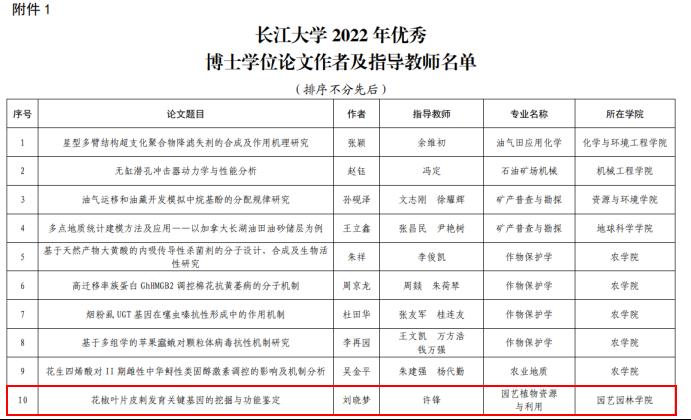 2019 刘晓梦博士 以花椒作为研究对象,深入分析花椒叶片皮刺发育相关的关键基因并鉴定其基因功能,为日后利用基因工程手段培育出少刺或无刺的花椒新品种提供理论基础。