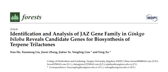 2022年5月,我中心2020级硕士研究生何筱在国际学术期刊《Forests》(农林学科3区,影响因子3.282)上发表了题为“Identification and Analysis of JAZ Gene Family in Ginkgo biloba Reveals Candidate Genes for Biosynthesis of Terpene Trilactones”的综述论文。硕士研究生何筱为文章第一作者,许锋教授和廖咏玲老师为通讯作者,世界杯2026官方网站为第一署名单位。