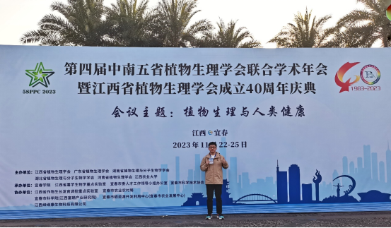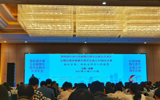 (通讯员 王挪202311月22-23日,中心张威威副教授带领硕士研究生王挪一同前往江西省宜春市参加第四届中南五省植物生理学会联合学术年会暨江西省植物生理学会成立40周年庆典活动,会议在宜春迎宾馆举行。此会议由江西省植物生理学会和江西农业大学牵头,与广东、湖南、湖北和河南四省植物生理学会联合主办,宜春公司、江西省薯芋生物学重点实验室、市委人才工作领导小组办公室和市科学技术协会共同承办。来自中南五省植物生理学界的植物生理与分子生物学工作者和国内相关领域著名专家近600人参加会议