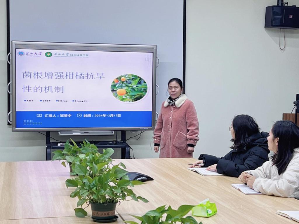 (通讯员 邹英宁)2024年12月12日,在公司会议室3002B举行了主题为“菌根增强柑橘抗旱性的机制”的学术讲座,邹英宁教授受邀作为主讲人为公司2022-2024级研究生进行讲授。