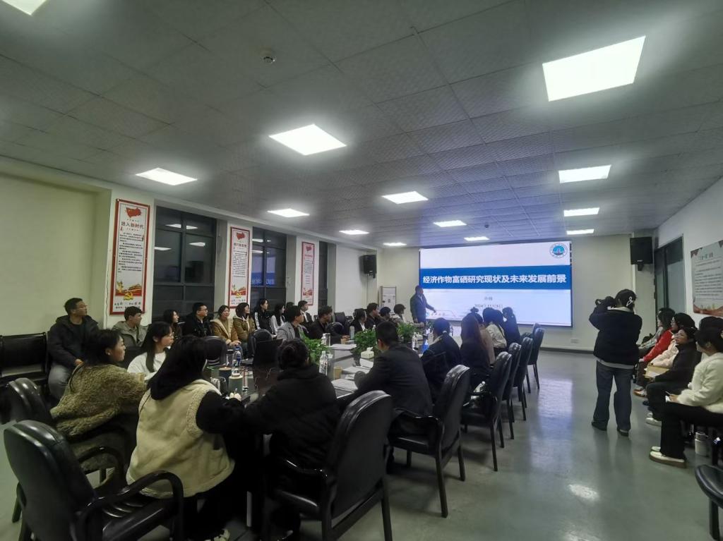 许老师是湖北省楚天学者特聘教授、楚天名师,长期致力于经济作物富硒机制研究及产业化应用。他在讲座中系统梳理了国内外富硒研究进展,并结合团队成果,重点解析了外源硒对作物硒富集、果实品质提升的生理机制。此外,许老师还分享了团队在构树、堇叶碎米荠等特色经济作物的聚硒机理研究成果,展示了富硒饲料、功能性产品等产业化开发案例。