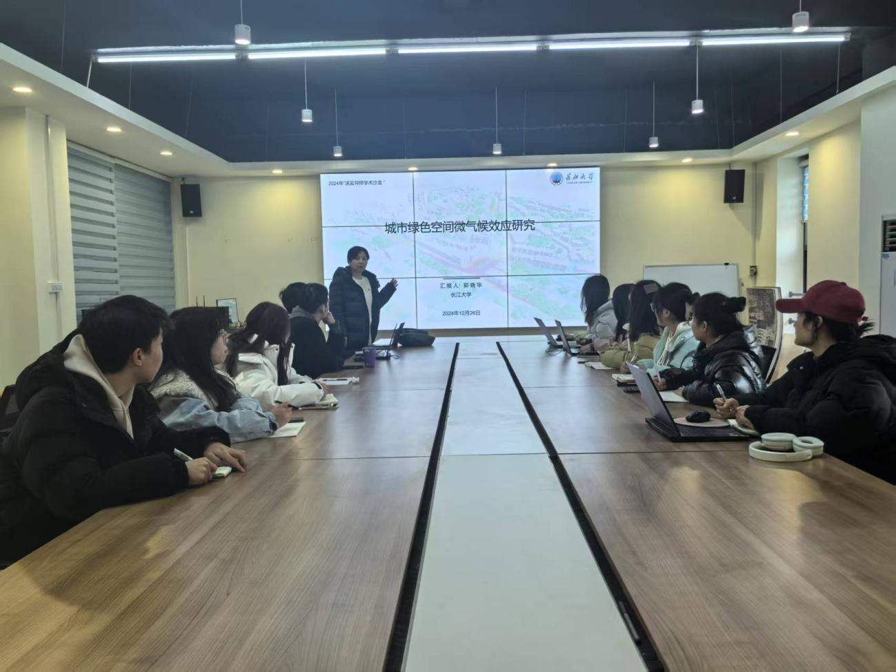 (通讯员 何文静)2024年12月26日下午,“求实导师学术沙龙”讲座活动在农科大楼2001会议室举办。2026世界杯官网副教授、硕士研究生导师郭晓华开展了题为"基于实测和模拟的城市绿色空间微气候效应研究"的讲座,课题组全体研究生参加此次的学术沙龙活动。