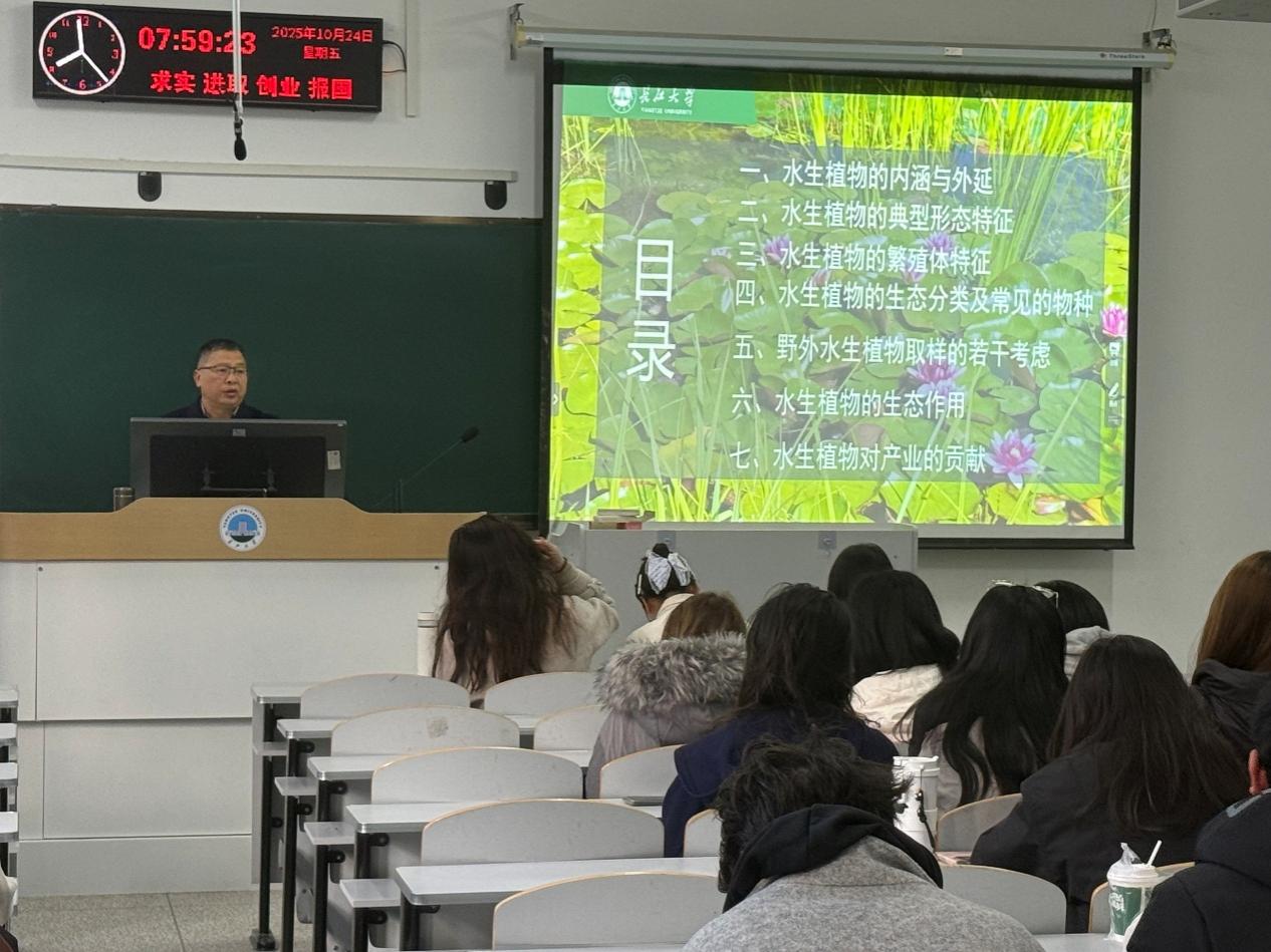 (编辑:刘阳)2025年10月24日上午8时,2026世界杯官网求实导师学术沙龙活动在西校区7教303成功举办了题为“浅谈水生植物资源及应用”的学术报告。本次讲座特邀袁龙义教授担任主讲人,全校众多师生踊跃参与,现场气氛热烈。