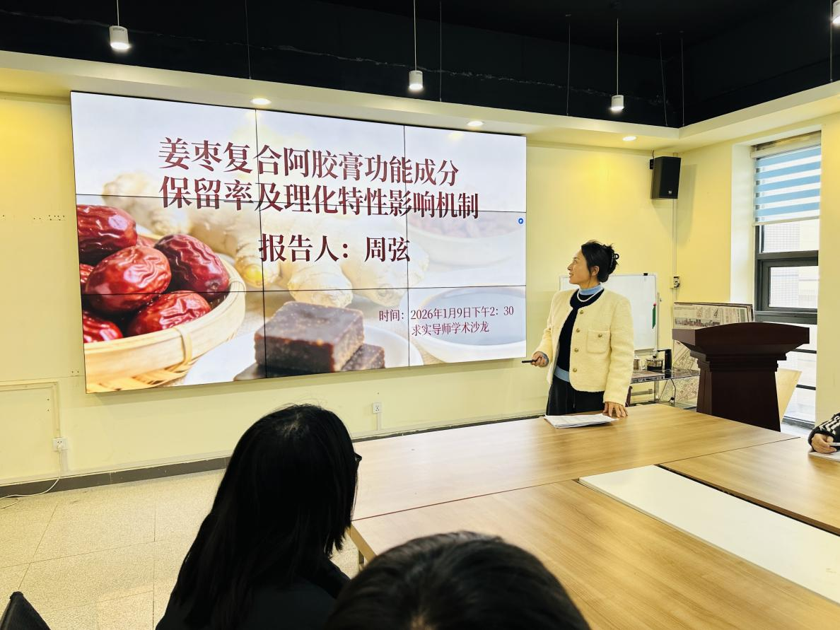 (通讯员 马佳伟)1月9日下午,2026世界杯官网在农科大楼2001A举办了一场“求实导师学术沙龙”活动,由周弦老师担任主讲人,以“姜枣复合阿胶膏功能成分保留率及理化特性影响机制”为核心议题,香辛作物创新团队课题组全体老师及研究生参与了本次学术交流与研讨。